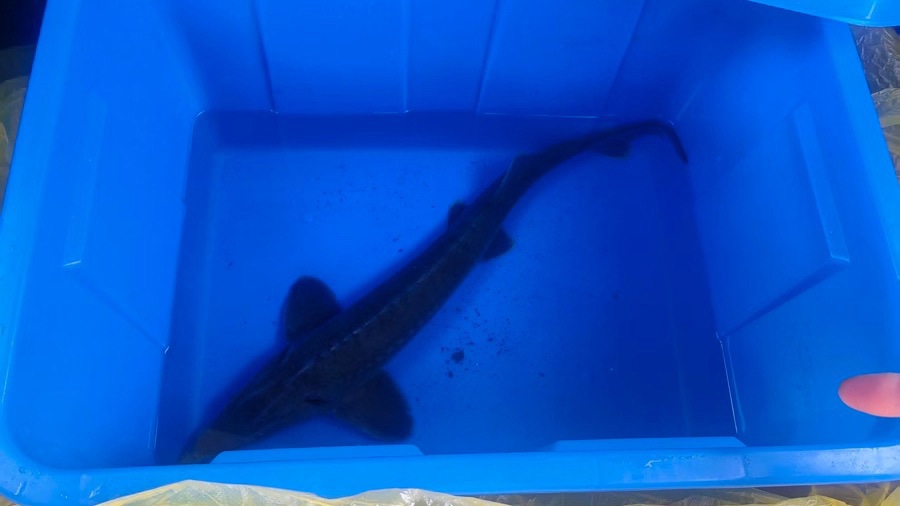 陈先生当即给鱼拍了照片,传给他的儿子,让帮忙看看是什么鱼。小陈在网上查过资料后告诉其父亲,这可能是一条中华鲟。陈先生心中一惊,想起曾在新闻中听过中华鲟是国家一级保护动物,于是好生将鱼养起来,并立即报警求助。
