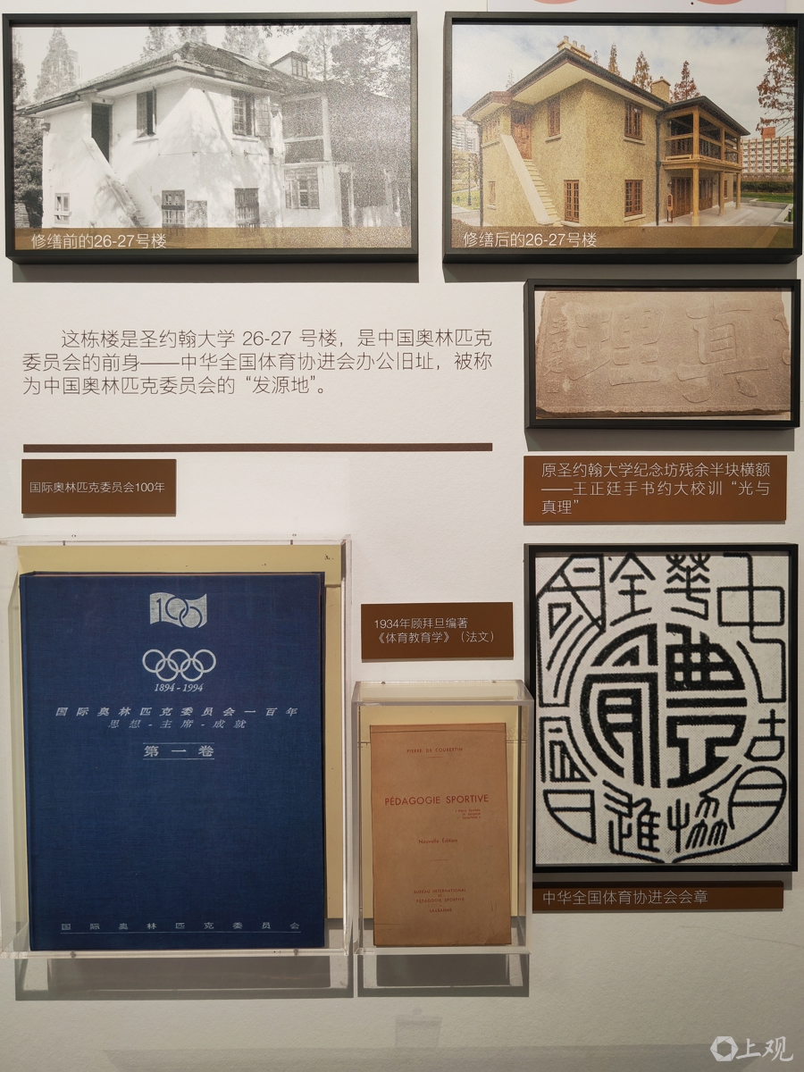 解放日报·上观新闻记者了解到,苏河怀抱的华政校园也是中国现代体育的摇篮之一。其原址上的圣约翰大学最早将西方教学风格引入中国,举办各类体育运动会。在如今华政长宁校区的20多栋文保建筑中,原名“顾裴德纪念体育室”的体育室于1919年完工,其底层东侧设有游泳池,在当时非常罕见,成为上海第一个学校游泳池。其二楼较高,设两层窗户,内为体育馆,可观看篮球、排球比赛等。